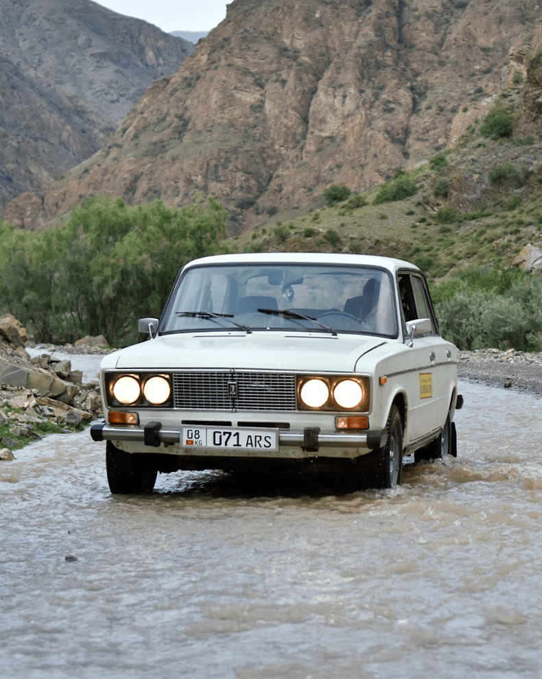 Kyrgyzstan moet je beleven in een Russisch koekblik. Niet in een Landcruiser, niet in een Defender. Veel te comfortabel en geen charme. Wij hebben voor je: de UAZ Buhanka, de UAZ Hunter, de Lada Niva en de Lada speelgoedauto. Alvast sorry voor de keuzestress..